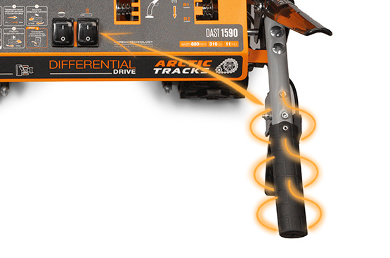 Автоматический дифференциал позволяет без усилий маневрировать снегоуборщиком на любых поверхностях, перебрасывая крутящий момент между колесами в зависимости от условий работы. При необходимости дифференциал можно разблокировать с помощью специального рычага.